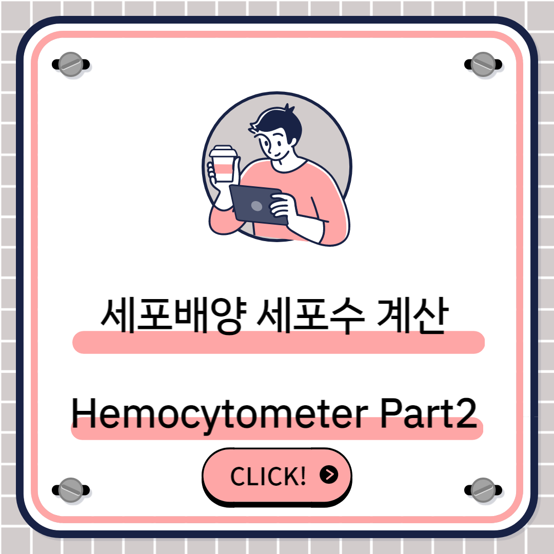 안녕하세요! 오늘은 지난 포스팅에 이어 hemocytometer 사용법과 세포수 계산에 대해 알아볼게요. 혹시 지난 포스팅을 아직 보지 않으신 분들은 먼저 보시고 오는 것을 추천합니다. 앞서 작성한 글에서 조금 더 추가하고 싶은 내용도 있기 때문이에요.